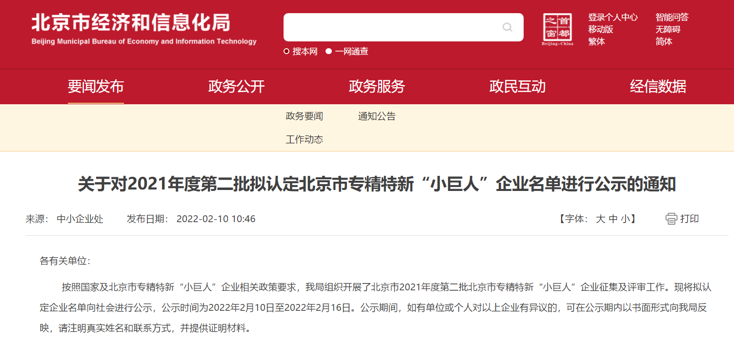 喜訊|北京世紀(jì)金光入選北京市專精特新“小巨人”擬定企業(yè)名單